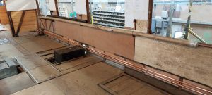 The installation effort over the following week was very successful, with the contractors completing the majority of the work. All the copper and flexible pipe runs are complete and the Diesel burner units have been mounted in the Guards compartment. The heater units have taken up the position where the original steam heat boiler was located, and the existing cabinet will be re-fitted to house the new units. With the heaters being located in the guards area and the pipe runs following the exact layout of the original steam heat pipes, this allows the installation to replicate, as near as possible, the displaced steam heat system, without having the issues of boiler certification. The contractor will return later next month to make the final connections and commission the system. This element of the work cannot be completed until the finished floor has been laid in the guards compartment, to enable the exhaust system and air intake to be properly fitted and sealed prior to testing.