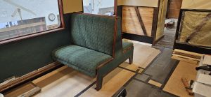 The rest of the interior could then be progressed including: roof insulation; ceiling panels; light fittings with their associated wiring; saloon side panels with the leathercloth covering, and the luggage racks